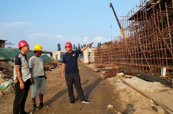 蒙山大街與濱河西路互通立交工程涵蓋橋梁工程和道路工程兩個部分,是四公司近些年來承建的難度較大的一項(xiàng)橋梁工程。該工程建設(shè)任務(wù)重,施工難度大,公司領(lǐng)導(dǎo)高度重視,委派李素偉為項(xiàng)目經(jīng)理。有人勸他不要接這“燙手的山芋”,可他卻說:“我是一名黨員,沖鋒在前是每個黨員干部義不容辭的責(zé)任?!睉{借這樣的擔(dān)當(dāng)和勇氣,他不畏艱難,勇挑重?fù)?dān),迅速組建項(xiàng)目部,第一時間帶領(lǐng)施工人員進(jìn)場施工。進(jìn)場后,他主動協(xié)調(diào)各方關(guān)系,上午到濱河公園產(chǎn)權(quán)單位,協(xié)調(diào)苗木遷移問題,下午趕赴設(shè)計(jì)院協(xié)調(diào)地勘與圖紙?jiān)O(shè)計(jì)工作,為工程推進(jìn)贏得了寶貴時間。施工中,為全面推進(jìn)工程進(jìn)度,他充分利用一切資源,采取“多點(diǎn)開花,重點(diǎn)投入”的施工方式,提高工作效率。同時,為避免地下管線施工與其他工序沖突,他安排技術(shù)人員對現(xiàn)狀地下管線進(jìn)行詳細(xì)摸排,及時確定煤氣、自來水、國防光纜等管線的準(zhǔn)確位置,并將相關(guān)數(shù)據(jù)提供給設(shè)計(jì)院,為工程后續(xù)施工奠定了堅(jiān)實(shí)的基礎(chǔ)。