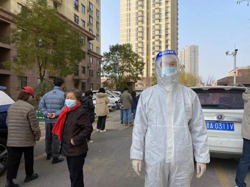 11月21日,辰宇公司董志超、李心貝、張維州、段曉娟、郭亞生等黨員職工就地轉(zhuǎn)崗,向社區(qū)報(bào)到,積極投身疫情防控的各項(xiàng)工作中,他們有的穿著白色防護(hù)服,有的穿著志愿者紅馬甲,協(xié)助維持秩序,負(fù)責(zé)采集信息,他們工作認(rèn)真,耐心細(xì)致,積極配合社區(qū)人員開(kāi)展工作,得到了社區(qū)居民的肯定和表?yè)P(yáng)。