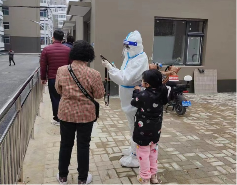 11月18日開(kāi)始,項(xiàng)目黨總支黨員干部陸續(xù)就地轉(zhuǎn)崗,加入志愿者隊(duì)伍,多名黨員干部職工發(fā)揮先鋒模范作用,主動(dòng)下沉一線抗擊疫情,引導(dǎo)社區(qū)居民排隊(duì)有序參檢,勸導(dǎo)群眾戴口罩、保持安全距離,幫助老人和兒童登記信息,配合社區(qū)做好核酸檢測(cè)采樣、關(guān)卡值班值守、日常防疫等工作,得到了社區(qū)工作人員的一致贊揚(yáng)。