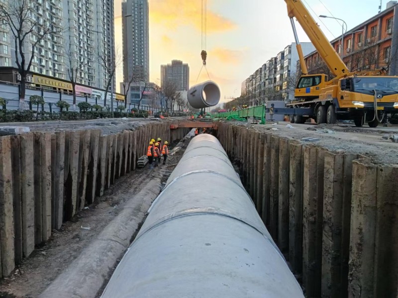 該工程位于勝利街,工程北澗河至解放路段道路全長1.74公里,規(guī)劃紅線寬度50米,污水管線主線長度為1919.5米,雨水管線主線長度為888.1米,雨污水管道施工采用明挖法與頂管施工相結(jié)合的方式。在新建管線區(qū)域,開挖深度超過5米,為確保施工安全,同時(shí)最大限度減少對周邊居民區(qū)的影響,基坑溝槽采用拉森鋼板樁進(jìn)行支護(hù)。為保證鋼板樁施打位置準(zhǔn)確無誤,施工人員在溝槽開挖后先進(jìn)行場地平整,同時(shí)測量員進(jìn)行定位,每隔兩米在中心線上插入鋼筋頭,以確保標(biāo)記的準(zhǔn)確性。打樁前,施工人員對鋼板樁進(jìn)行逐個(gè)檢查。在插打過程中,實(shí)時(shí)進(jìn)行監(jiān)測,保證每片鋼板樁的斜度不超過2%,樁體打入后,立即進(jìn)行閉水性檢查,對漏水部位進(jìn)行焊接修補(bǔ),并安排專人每日對樁體進(jìn)行檢查。項(xiàng)目部不斷提升施工安全管理水平,嚴(yán)格把控所有環(huán)節(jié),確保高標(biāo)準(zhǔn)高質(zhì)量完成每一項(xiàng)工作。