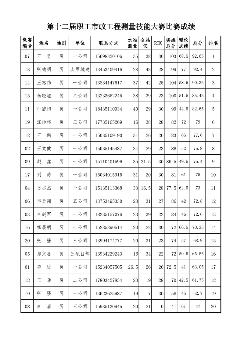 又訊:本屆市政工程測量放線員技能大賽,共有94名選手報名參賽,大賽分為理論和實操兩部分。理論考試獲得前20名的選手進入實際操作比賽。經(jīng)過一天的角逐,裁判組根據(jù)選手現(xiàn)場操作情況進行綜合評判、打分。每位選手最終成績由30%的理論成績和70%的實操成績組成,最終決出前16名,其中榮獲前6名的選手將報請市勞動競賽委員會給予記功表彰,7-16名的選手頒發(fā)“優(yōu)秀選手”榮譽證書。