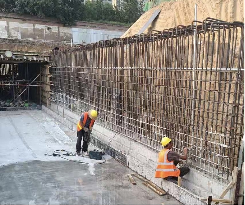 在K1+030處施工時,南北方向有一條地下人行通道,項目部需要在通道內(nèi)安裝疏散指示燈、應(yīng)急指示燈、熒光燈等。在施工過程中,項目部緊跟道路施工方的施工進度,當(dāng)?shù)缆肥┕し侥竟ぶ鹉>邥r,項目部相關(guān)施工人員需要立即將鋼管預(yù)埋進鋼筋架中,這就需要項目部和道路施工方緊密配合,施工員每日緊盯施工進度,見縫插針式地完成管線預(yù)埋工序,為后續(xù)施工奠定了基礎(chǔ)。由于前期設(shè)計圖與施工實際情況有出入,無法確定電源箱的具體位置,現(xiàn)場技術(shù)負責(zé)人多次與設(shè)計院聯(lián)系,經(jīng)過不斷實地勘察、測量、畫圖對照,最終確定電源箱的實際位置,并在道路上增加了多條鋼管過路,確保送電時萬無一失。