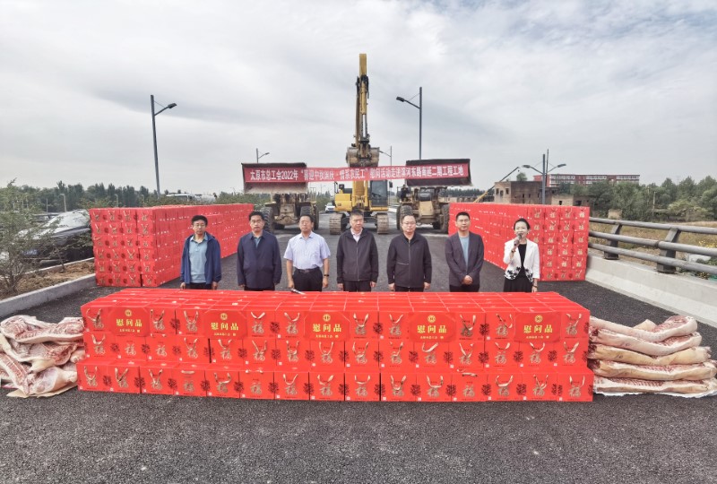 活動(dòng)中,太原市總工會(huì)領(lǐng)導(dǎo)來到施工現(xiàn)場(chǎng)與一線施工人員進(jìn)行親切交談,了解施工和生活情況,并為大家送來了月餅、豬肉等慰問品。
