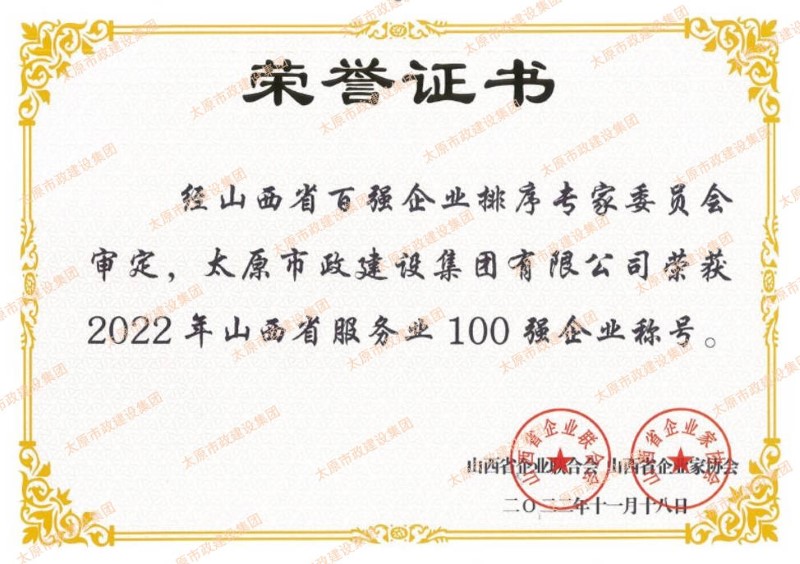 近日,集團公司榮獲山西省企業(yè)聯(lián)合會和山西省企業(yè)家協(xié)會頒發(fā)的“山西省功勛企業(yè)”和“山西省100強”(排名第45位)“山西省服務業(yè)100強”榮譽稱號。集團公司黨委副書記、副董事長、總經理溫慧武榮獲“太原市功勛企業(yè)家”榮譽稱號。