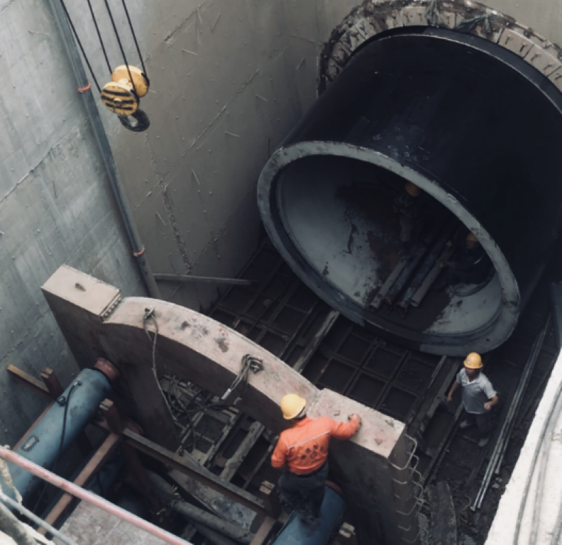 水西關(guān)街改造工程(濱河?xùn)|路至解放路),道路全長1.86公里,紅線寬30米,施工內(nèi)容包括:排水工程、電力工程、路基路面工程,于2017年6月開工建設(shè),由一公司負(fù)責(zé)承建。其中排水工程中的雨水主線2×DN3500毫米頂管分項工程為該工程的最大亮點,同時也是施工中最大難點,其管徑之大、距離之長,當(dāng)時在華北地區(qū)城市基礎(chǔ)設(shè)施工程建設(shè)中名列第一,也是集團公司歷史上接觸的最大管徑的雙排頂管施工。施工中,項目部施工人員利用最先進的操控設(shè)備,小心翼翼、穩(wěn)步推進,嚴(yán)格將誤差控制在規(guī)定范圍內(nèi),有效解決了管道埋設(shè)中對道路兩側(cè)建筑物的破壞和道路交通的堵塞等難題,并采用SMW工法樁+冠梁的支護形式對沉井基坑進行支護,保證了基坑內(nèi)部和周邊建筑物的安全。同時,項目部通過制定一系列扎實有效的舉措,對工程進行事前、事中、事后控制,真正把質(zhì)量控制落到實處。該工程建成后,實現(xiàn)分流都司街雨水方涵和新建路雨水方涵雨水,收集解放路800公頃匯水面積,緩解下游城南退水渠壓力,對提升城市排洪能力意義重大。