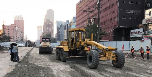 太原市政建設(shè)集團有限公司紡織街改造工程水穩(wěn)底基層開始鋪筑