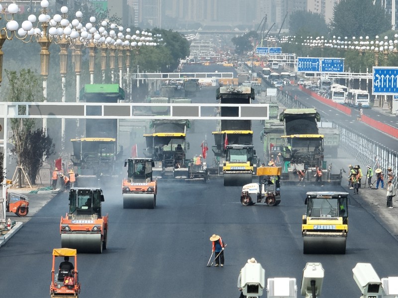 面對全長4.3公里的施工戰(zhàn)線,租賃公司和路面公司展現(xiàn)了高度的專業(yè)協(xié)作與責(zé)任擔(dān)當(dāng)。租賃公司科學(xué)調(diào)度大量大型機(jī)械設(shè)備,包括銑刨機(jī)、壓路機(jī)和攤鋪機(jī)等,按照施工計(jì)劃分批次進(jìn)場,確保了“分段流水、平行作業(yè)”模式的高效運(yùn)轉(zhuǎn)。通過精準(zhǔn)匹配機(jī)械供應(yīng)與作業(yè)面規(guī)劃,他們?yōu)楣こ烫峁┝藞?jiān)實(shí)的設(shè)備保障,同時嚴(yán)格執(zhí)行機(jī)械操作安全規(guī)程,有效管控高風(fēng)險作業(yè)環(huán)節(jié)。在機(jī)械設(shè)備充足的同時,路面公司聚焦道路施工的質(zhì)量與精細(xì)化管理。在完成地下管網(wǎng)改造工程后,他們迅速推進(jìn)路面工程施工進(jìn)度,實(shí)施水穩(wěn)、瀝青鋪筑工作。面對高溫和雨季的持續(xù)挑戰(zhàn),路面公司施工人員堅(jiān)守一線,嚴(yán)格把控每道工藝,以精益求精的施工質(zhì)量和爭分奪秒的施工速度圓滿完成施工任務(wù),完成全線水穩(wěn)和瀝青的攤鋪工作。租賃公司和路面公司通過與施工單位的緊密配合,展現(xiàn)了同心協(xié)力、協(xié)同作戰(zhàn)的施工風(fēng)采,助力迎澤大街(西段)煥新升級,彰顯了太原市政集團(tuán)的專業(yè)水準(zhǔn)與責(zé)任使命。