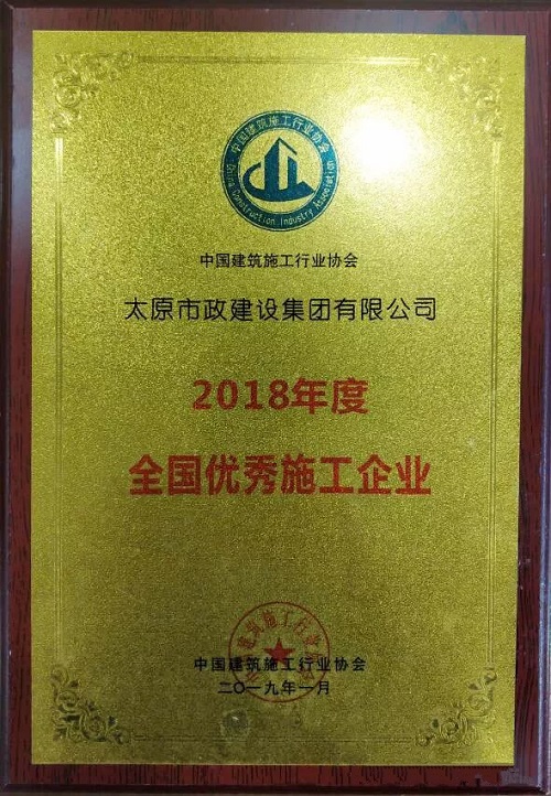太原市政建設(shè)集團(tuán)有限公司榮獲“2018年度全國優(yōu)秀施工企業(yè)”榮譽(yù)稱號
