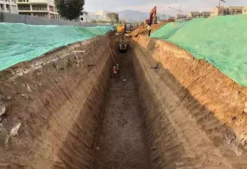 該工程道路兩側緊鄰沿線村莊的農(nóng)田、大棚,施工作業(yè)面狹窄,大量開挖土方因場地有限無法進行放置,嚴重影響施工正常推進。目前,項目部正在加快解決征地問題,積極與業(yè)主、村委會等溝通聯(lián)系,爭取盡快突破場地面積小的施工難點,擴大施工作業(yè)面積,便于大量土方堆放,為后續(xù)施工贏得更多時間。在溝槽開挖施工時,由于工程全線平均溝槽深度為8米,在道路西村段深度達到9米,但因長臂挖機的機械臂長度為5米,無法達到溝槽底部進行土方外運。項目部果斷采取有效措施,先利用一臺挖機進行放坡作業(yè),將整體高度降低2.5米,在確保施工安全的前提下,再利用兩臺挖機下到下降高度處,接力倒運土方到路面的4臺鏟車進行清運,保證整個土方外運工序銜接緊密、流水作業(yè),加快工程進度。同時,因施工南段道路兩側位于農(nóng)作物種植地帶,土質屬于濕陷性黃土,無法直接用于道路施工,為加強工程質量管控,項目部針對整個施工斷面進行了清表及換填處理,確保道路施工符合質量標準。