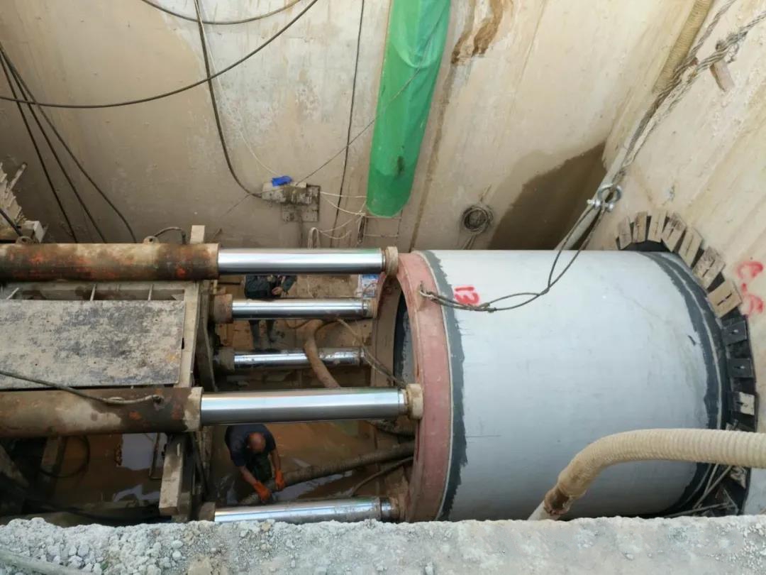 項(xiàng)目部三措并舉,強(qiáng)化“質(zhì)量意識(shí)”。頂管作業(yè)中,因有100米距離位于河道內(nèi),屬于濕陷性地質(zhì),施工人員通過(guò)干插片石、澆筑混凝土的方法進(jìn)行了墊層換填,提升了基層承載力,有效防止管道下沉;進(jìn)行頂管作業(yè)時(shí),部分路段需下穿房屋,為防止出現(xiàn)房屋開(kāi)裂或下沉的情況,施工人員積極研究對(duì)策,決定采用頂管穿過(guò)房屋后及時(shí)注漿的措施,保證上方房屋安全;頂管機(jī)出洞吊裝時(shí),先用鋼板對(duì)2.4米口徑的管道進(jìn)行連接,并在管口處設(shè)置護(hù)管、抹帶,提升管道間的穩(wěn)定性和密封性,防止發(fā)生滲水現(xiàn)象,為后續(xù)施工開(kāi)展打下堅(jiān)實(shí)基礎(chǔ)。