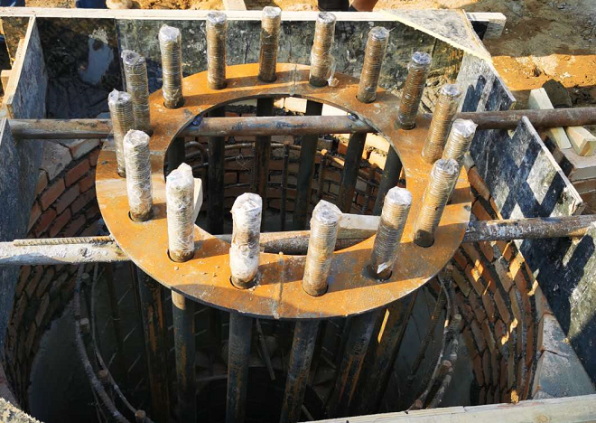 十三項(xiàng)目部承建的桃園四巷片區(qū)道路改造工程地處老城區(qū),地下水位高,基礎(chǔ)埋深較深,土質(zhì)為淤泥質(zhì)軟土,且道路兩側(cè)分布高壓電桿。施工中,項(xiàng)目部不斷創(chuàng)新施工工藝,改進(jìn)施工技術(shù),為工程的順利完工奠定了堅(jiān)實(shí)的基礎(chǔ)。為配合市政府進(jìn)行無纜化社區(qū)改造施工,需在新建路桃園四巷路口打設(shè)一處電纜鋼桿基礎(chǔ),該鋼桿基礎(chǔ)為直徑1.8米,埋深5.7米的鋼筋混凝土結(jié)構(gòu)。由于緊鄰高壓電桿,無法采用常見的基坑施工方法,經(jīng)過技術(shù)人員討論分析,項(xiàng)目部決定采用沉管工藝進(jìn)行施工。施工中,需在基礎(chǔ)位置挖設(shè)外徑2.5米、深度1米的基坑內(nèi)垂直放置內(nèi)徑1.5米,長度2.5米的企口混凝土管,項(xiàng)目部采用機(jī)械配合人工挖土的方式進(jìn)行管道下沉施工。為加快施工進(jìn)度,施工人員采用三班交替24小時不間斷施工的方法,經(jīng)過3天4夜的日夜奮戰(zhàn),順利將2根2.5米長的預(yù)制混凝土管沉入指定深度。隨后,通過安插片石穩(wěn)定管基,澆筑混凝土進(jìn)行沉管封底,待基坑底部混凝土達(dá)到規(guī)定強(qiáng)度后,按設(shè)計(jì)高程吊裝并固定鋼筋籠,最終圓滿完成了鋼桿基礎(chǔ)的施工任務(wù),為工程質(zhì)量和施工安全提供了有效保障。