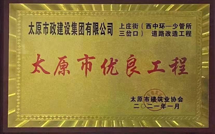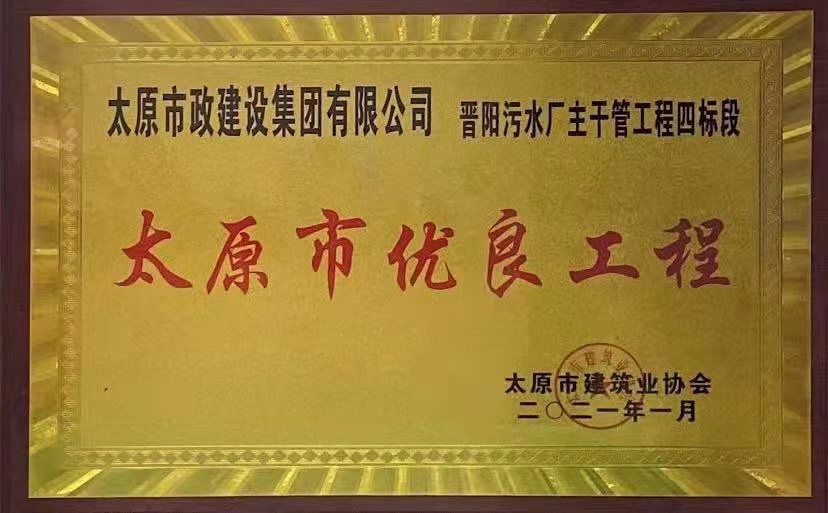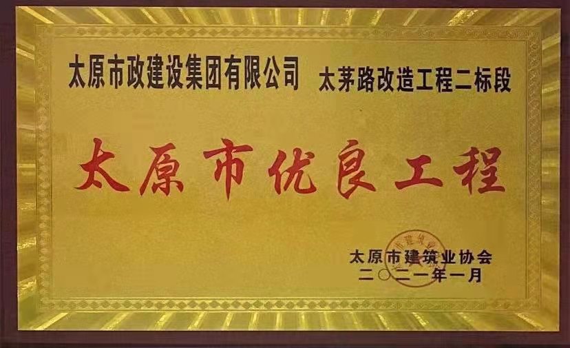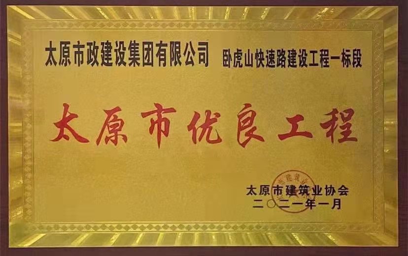 2021年1月13日,集團(tuán)公司承建的晉陽污水廠主干管工程四標(biāo)段、太茅路改造工程二標(biāo)段、臥虎山快速路建設(shè)工程一標(biāo)段、上莊街(西中環(huán)——少管所三岔口)道路改造工程被太原市建筑業(yè)協(xié)會評為2020年“太原市優(yōu)良工程”,工程項(xiàng)目經(jīng)理郝東輝、高鴻、李瑞金被評為“2020年度太原市工程建設(shè)優(yōu)秀項(xiàng)目經(jīng)理”。