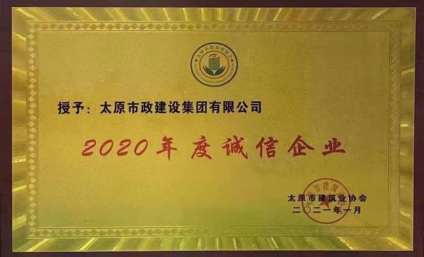 2021年1月26日,集團(tuán)公司被太原市建筑業(yè)協(xié)會評選為“2020年度誠信企業(yè)”。
