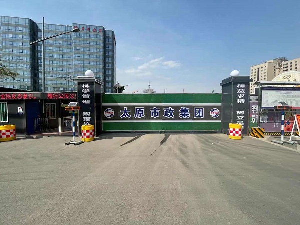 該工程作為太原市今年的重點(diǎn)工程,二公司上下高度重視,開工前召開安全文明施工動(dòng)員會(huì),要求全員認(rèn)真執(zhí)行六個(gè)百分百相關(guān)要求,提前規(guī)劃安全文明施工具體內(nèi)容,全力打造安全文明標(biāo)準(zhǔn)化工地。項(xiàng)目部認(rèn)真落實(shí)創(chuàng)建綠色文明工地要求,嚴(yán)格執(zhí)行《太原市建設(shè)工程安全文明標(biāo)準(zhǔn)化管理手冊》標(biāo)準(zhǔn),注重創(chuàng)新改善項(xiàng)目部整體外觀形象,重新設(shè)計(jì)了項(xiàng)目部入口和圍擋,采用反光噴繪布覆蓋工地大門,并對(duì)大門周邊輪廓進(jìn)行不銹鋼條鑲嵌,方便夜間車輛進(jìn)出工地;在大門門柱上方加裝“帽檐”,四邊用鋼條裝飾,讓大門整體更顯美觀。同時(shí),項(xiàng)目部根據(jù)廣場周邊人口密集、商場眾多等情況,在圍擋的設(shè)計(jì)上進(jìn)行改良,將傳統(tǒng)的3毫米鋼板改為5毫米鋼板,并用噴繪布全范圍覆蓋,提高了圍擋整體牢固度和美觀度。